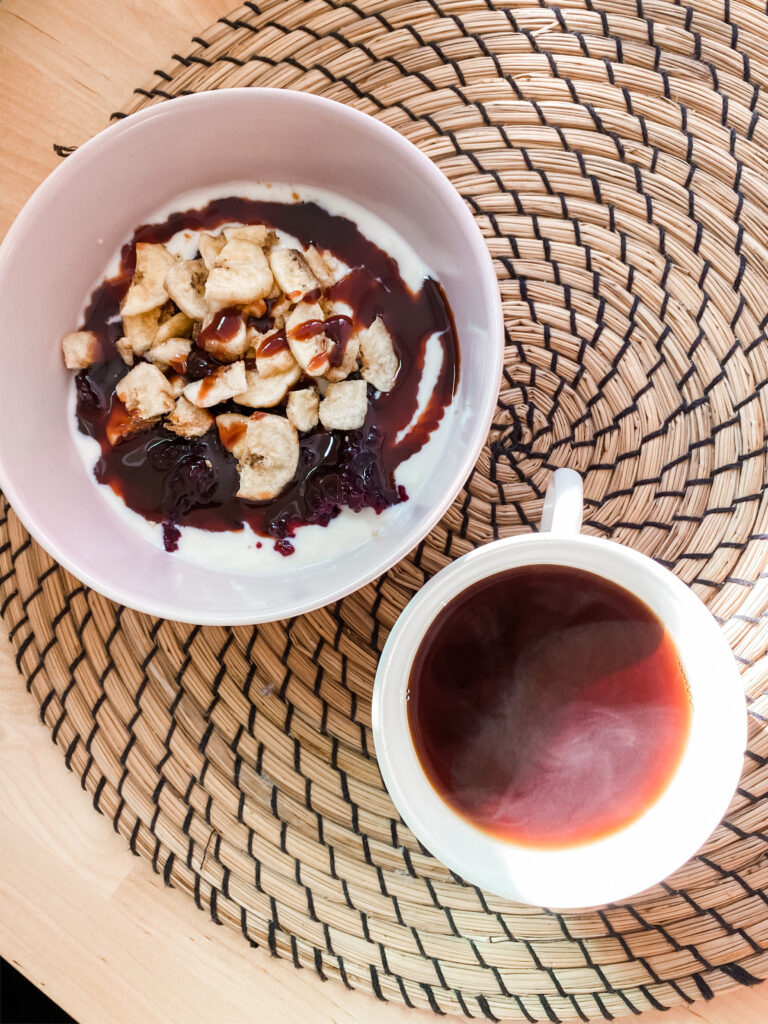 Prosty i smaczny deser, który sprawdza się, kiedy masz ochotę na coś słodkiego, a nie masz czasu i/lub nie chcesz używać kupnych przetworzonych słodyczy. Nie zawiera nabiału (chyba że użyjesz prawdziwego jogurtu), więc nie będzie powodował nadmiernej produkcji śluzu. Nie zmienia to jednak faktu, że wszystkie składniki są zimne i wychładzające, więc jedzony regularnie będzie osłabiał ogień trawienny. Dlatego używaj z umiarem :).